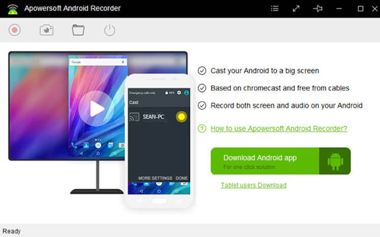 Первая программа для дублирования экрана Android-устройства в нашем списке называется Apowersoft Android Recorder. Это, в первую очередь, так называемый рекордер экрана, который также имеет встроенную функцию зеркалирования. Программа Apowersoft Android Recorder без каких-либо проблем способна передавать потоковое видео, которое есть на вашем Android-устройстве на экран компьютера. Она использует функцию Chromecast, поэтому для работы не потребуется никаких допотопных проводов. Просто убедитесь, что телефон и компьютер находятся в одной сети Wi-Fi, затем подключите устройство с помощью функции «Cast», и теперь вы можете наслаждаться просмотром.