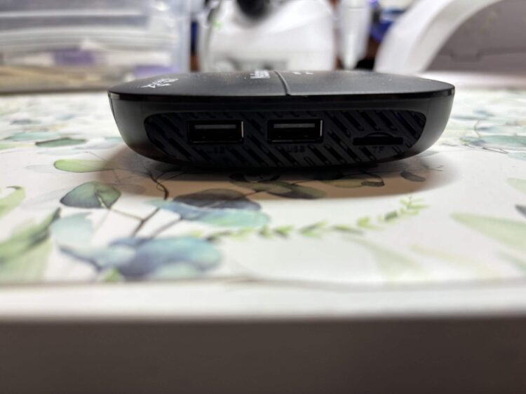Порадовало, что производитель не стал экономить на разъемах: здесь два USB, HDMI, Ethernet, разъем для карты памяти, AV и питание. В общем, всё, что необходимо для счастливой жизни. Самое интересное, что USB мне реально пригодился, но об этом чуть позже. В остальном, это черная обычная ТВ-приставка, которая за исключением своего размера с точки зрения внешнего вида ничем не отличается от огромного количества конкурентов.