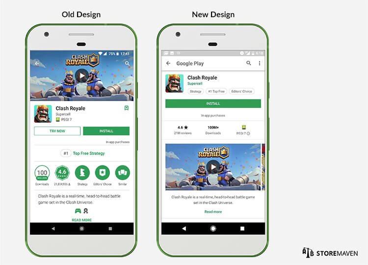 App Store обновили еще 2 года назад, тем временем Google Play продолжает устаревать, и непонятно, чего ждет Google. Кроме того, на мой взгляд, простого редизайна недостаточно. Например, вот так выглядит обновленный Google Play, который почему-то пока доступен не всем: