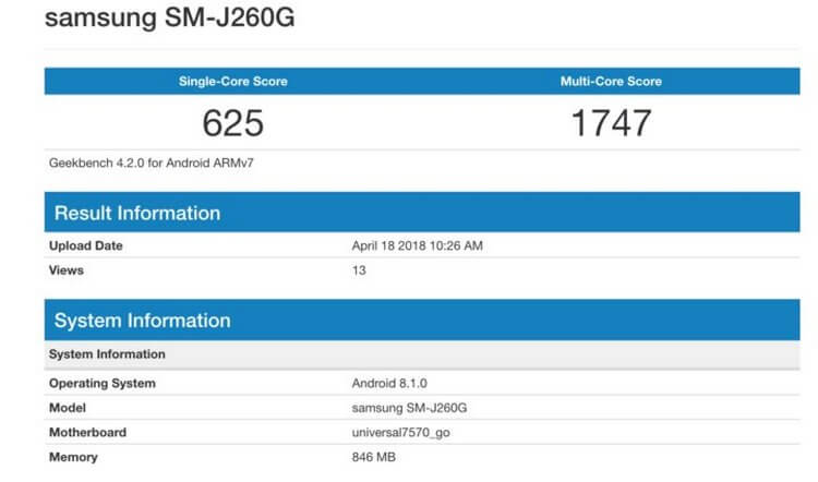 Samsung Electronics готовится представить свой первый смартфон под управлением Android Go. На это указывают результаты синтетического теста Geekbench. Испытание подтвердило характеристики будущего смартфона, а также версию операционной системы, на базе которой он будет работать.
