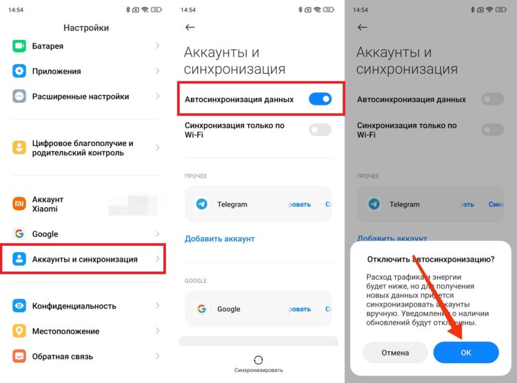 - Ограничьте фоновую синхронизацию. Зайдите в «Настройки» — «Аккаунты». Отключите синхронизацию для сервисов, которые не нужны в реальном времени. Почту и контакты достаточно синхронизировать раз в несколько часов, а не каждые пять минут.