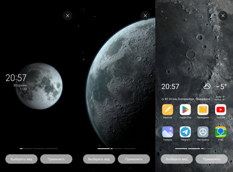 Одной из главных фишек MIUI 12 стали суперобои на Xiaomi. Изначально разработчики предложили только два варианта: Земля и Марс, а впоследствии добавили Сатурн, Геометрию и Заснеженные вершины. На протяжении нескольких последних лет доступные варианты оставались неизменными, но в оболочке HyperOS появились новые суперобои Луна. Если ваш Xiaomi до сих пор базируется на MIUI, или он вообще не поддерживает функцию анимированных обоев, их все равно можно установить на смартфон.