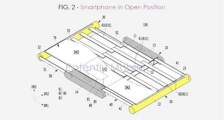 Не успев выпустить свой первый гибкий смартфон, Samsung Electronics занялась проектированием раздвижных дисплеев. Это следует из материалов Ведомства по патентам и товарным знакам США. Согласно обнаруженным данным, производитель работает над созданием системы механизмов расширения, увеличивающих площадь дисплея.