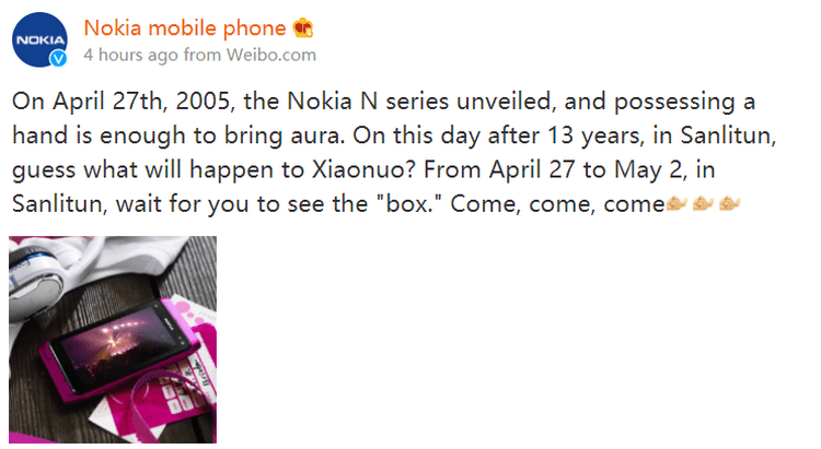 Финский конгломерат HMD Global, которому принадлежит бренд Nokia, планирует возродить линейку смартфонов Nokia N. Об этом представители компании рассказали на своей странице в социальной сети Weibo. Релиз переосмысленного модельного ряда, вероятно, состоится 2 мая в Пекине.