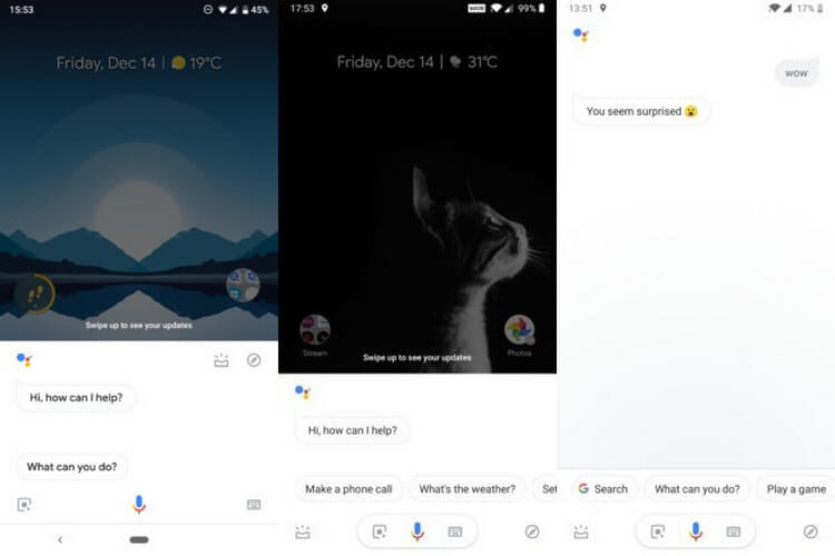 На представленных ниже скриншотах видно, что две пиктограммы, ведущие к списку популярных команд и рекомендациям, переехали в нижнюю часть. Теперь, когда «Google Ассистент» открыт во весь экран, вам не придется тянуться к ним большим пальцем, растягивая кисть до неестественного состояния. Из-за переноса этих клавиш разработчикам пришлось переработать нижнюю панель, объединив клавиши активации записи, клавиатуры и Google Lens в единый блок.