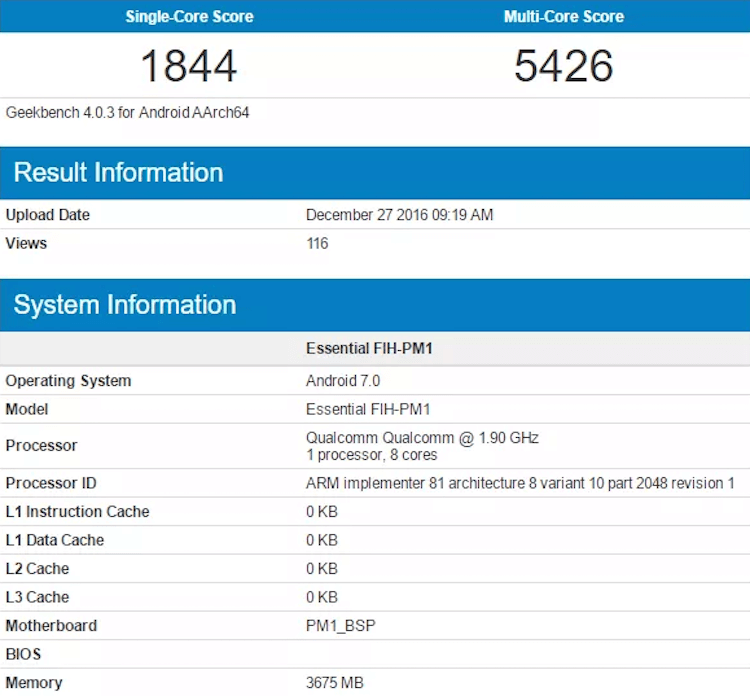 Как сообщают представители ресурса phonearena, речь идёт о тестовом смартфоне под названием Essential FIH-PM1. Очевидно, что данное сочетание букв и цифр нам ни о чём не скажет, а потому стоит сказать о характеристиках. Ими стали восьмиядерный центральный процессор на тактовой частоте 1,9 ГГц и 4 ГБ оперативной памяти. Само устройство работает под управлением операционной системы Android 7.0 Nougat.
